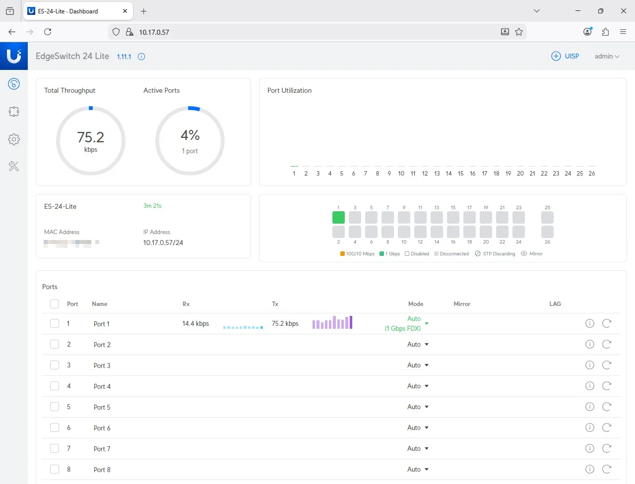 | Model | EdgeSwitch 24 Lite |